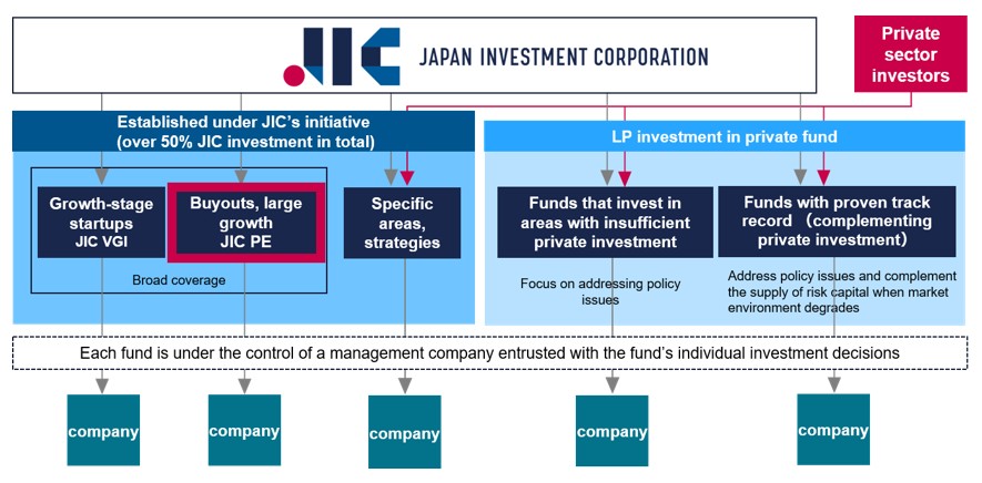 ・In addition to establishing funds under its umbrella, JIC promotesinvestment activities by making LP investments in private funds