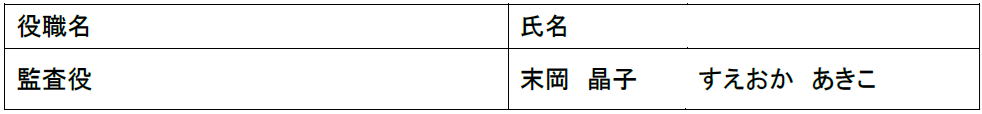 新任監査役は、令和7年6月27日の定時株主総会の決議により監査役に選任され、上記役職に就任いたしました。